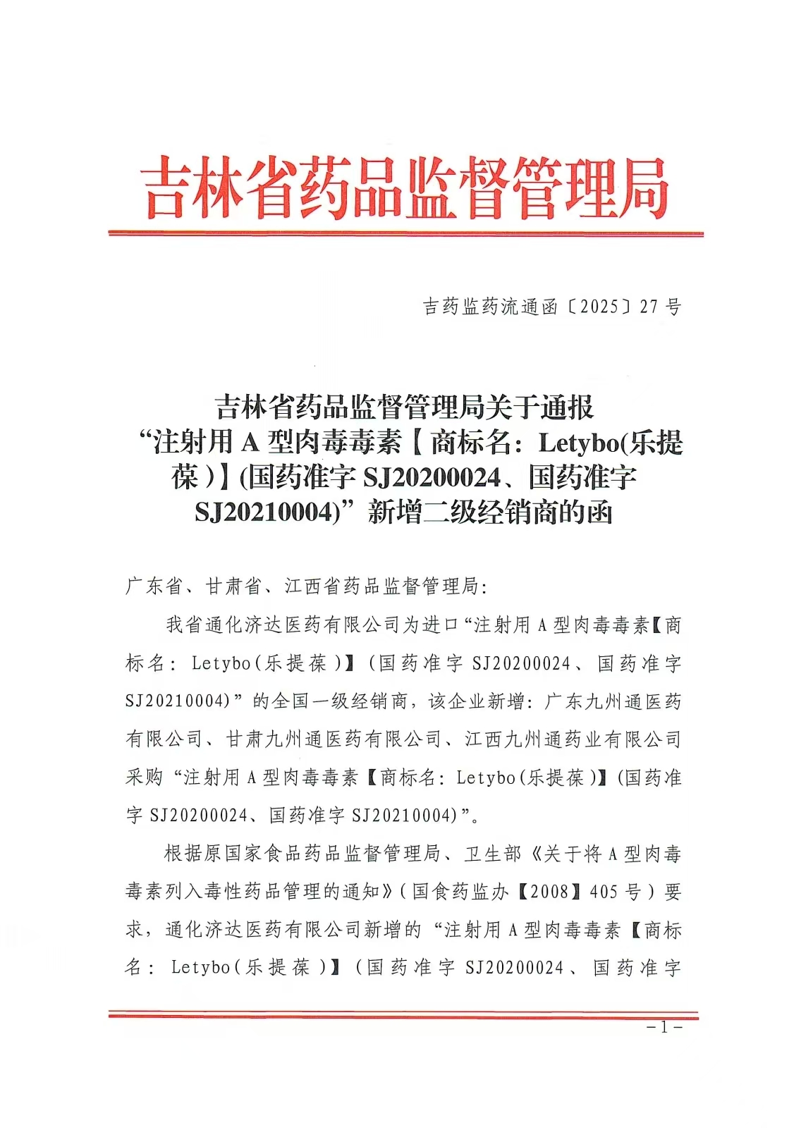 裸聊直播-裸聊直播网站-成人裸聊直播 关于通报“注射用A型肉毒毒素【商标名:Letybo(乐提葆)】(国药准字 SJ20200024、国药准字SJ20210004)”新增二级经销商的函